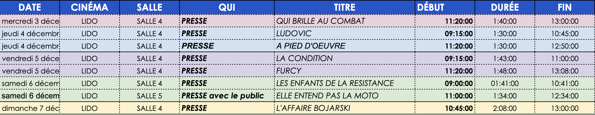 Programme des projections presse au cinéma Le Lido :